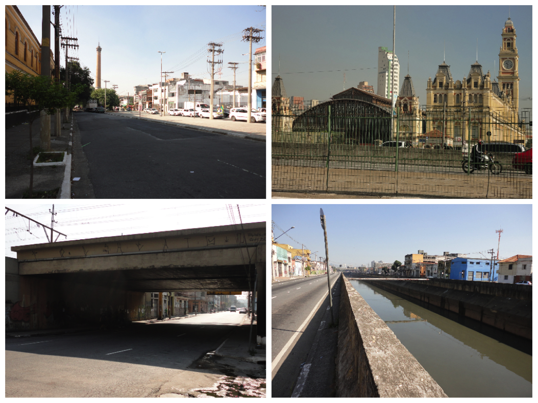 2The images from the upper left corner to the lower right corner are respectively: Rua João Teodoro, with the ROTA wall by the side; Avenida Tiradentes with Estação da Luz on the background; Rua da Cantareira underpass; and, Avenida dos Estados.